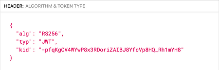 The "alg" (algorithm) field specifies the cryptographic algorithm used to sign the JWT. In this case, "RS256" indicates that the token is signed using the RSA algorithm with SHA-256 hashing.