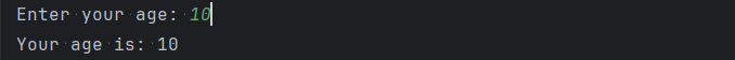 System.out.println("Your age is: " + age);