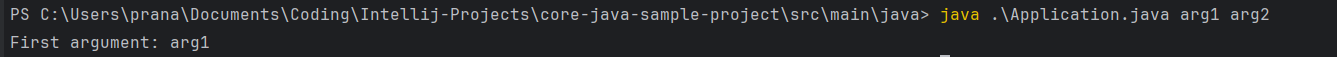 We can also pass input arguments directly when running the program from the command line. These arguments can be accessed through the `args` parameter in the `main` method.